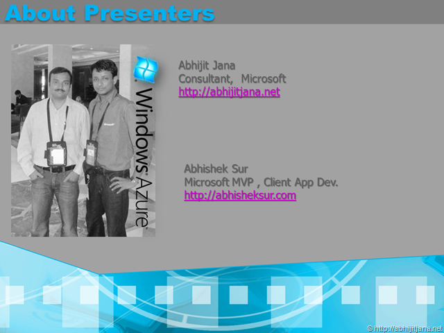 Wonderful session! Very good heads up about Cloud Computing and Microsoft offerings on Cloud Computing. Thanks to Abhijit and Abhishek :).
