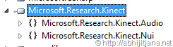 This will add Microsoft.Research.Kinect.dll as reference to your project. The top level view of this assembly in Object Explorer given as below. These two are the different segment of Kinect APIs.