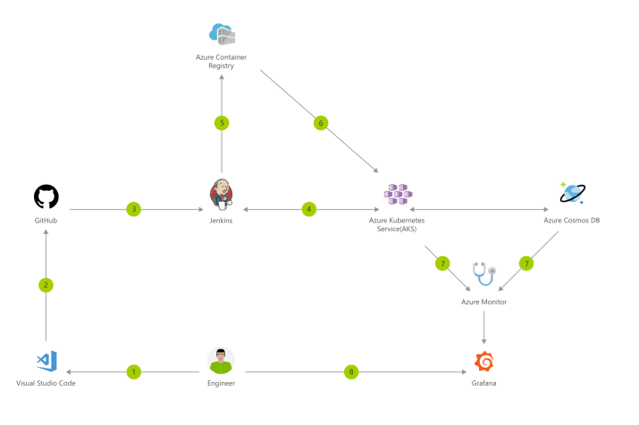 Above diagrams show a typical cycle for Continuous Integration (CI) & Continuous Delivery (CD) using Azure DevOps. With different tools, where the developer writes code in Visual Studio, or Visual Studio Code or any other IDE, push it into source code repository such as TFVC, Subversion or Git, Azure DevOps Pipeline trigger the builds and deploy to Azure App services.