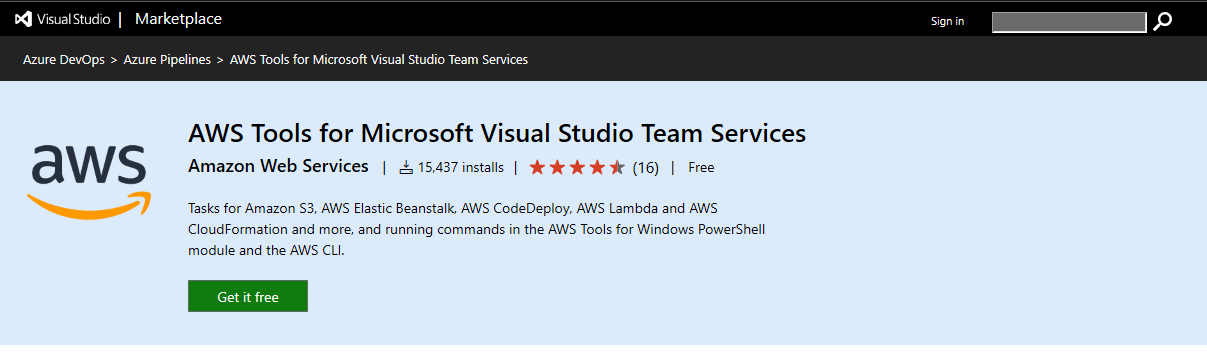 Before we start changing on the Pipeline, we need to install AWS Tools for Azure DevOps. This tool adds tasks to enables build and release pipelines in Azure DevOps to work with AWS services, including AWS Elastic Beanstalk, Amazon S3, AWS CodeDeploy, AWS Lambda, etc.