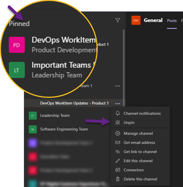 You can Pin the most important and frequently used Channel and Chats for easy access. Once you Pin, they will appear under the Pinned section in the Teams as we all as in the Chats.