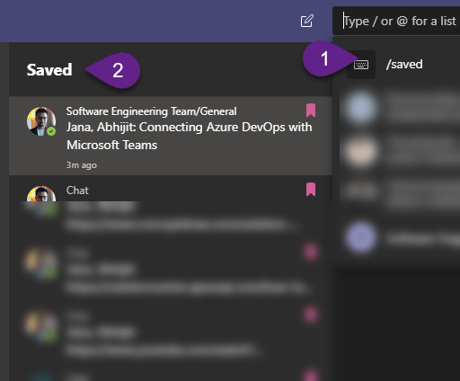 You can check out all your saved messages, chats by typing /Saved Command bar.