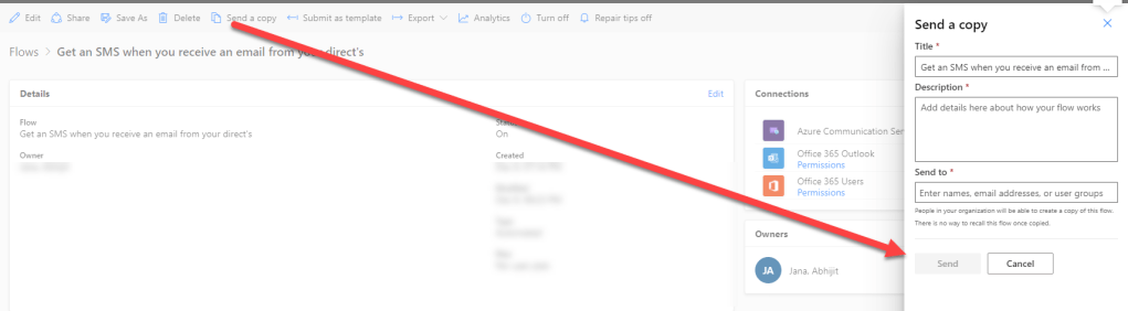 The scenarios we are going to cover is to “Get an SMS when you receive an email from your direct’s” – So, whenever there is an email from your direct reports, you will receive an SMS; also additional condition we will add as follows