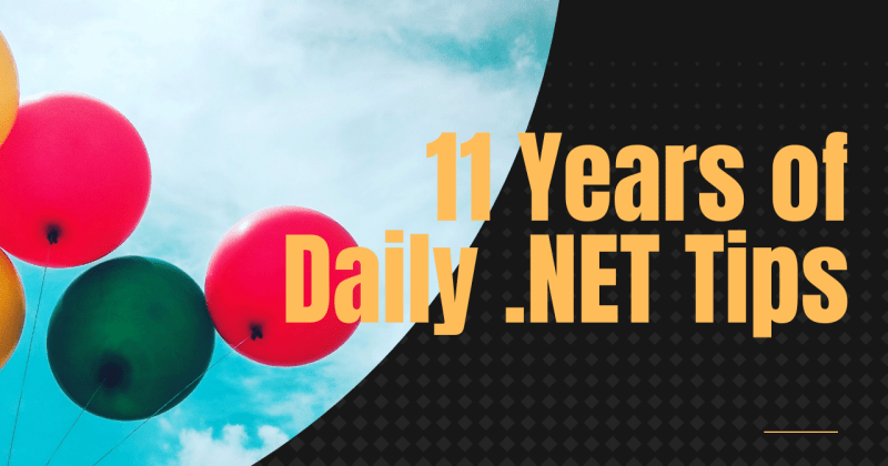 Today, Daily.NET Tips marks its 11th Anniversary! It feels like a few days! Time Flies! I decided to have a very focused, niche, and single knowledge base of .NET, to empower every developer to become more productive and launch Daily .NET Tips. Today, Daily.NET Tips marks its 11th Anniversary!!! 27th Dec 2010, exactly eleven years ago, Daily .NET Tips, was published, and till then, it serves over several million developers across the globe.